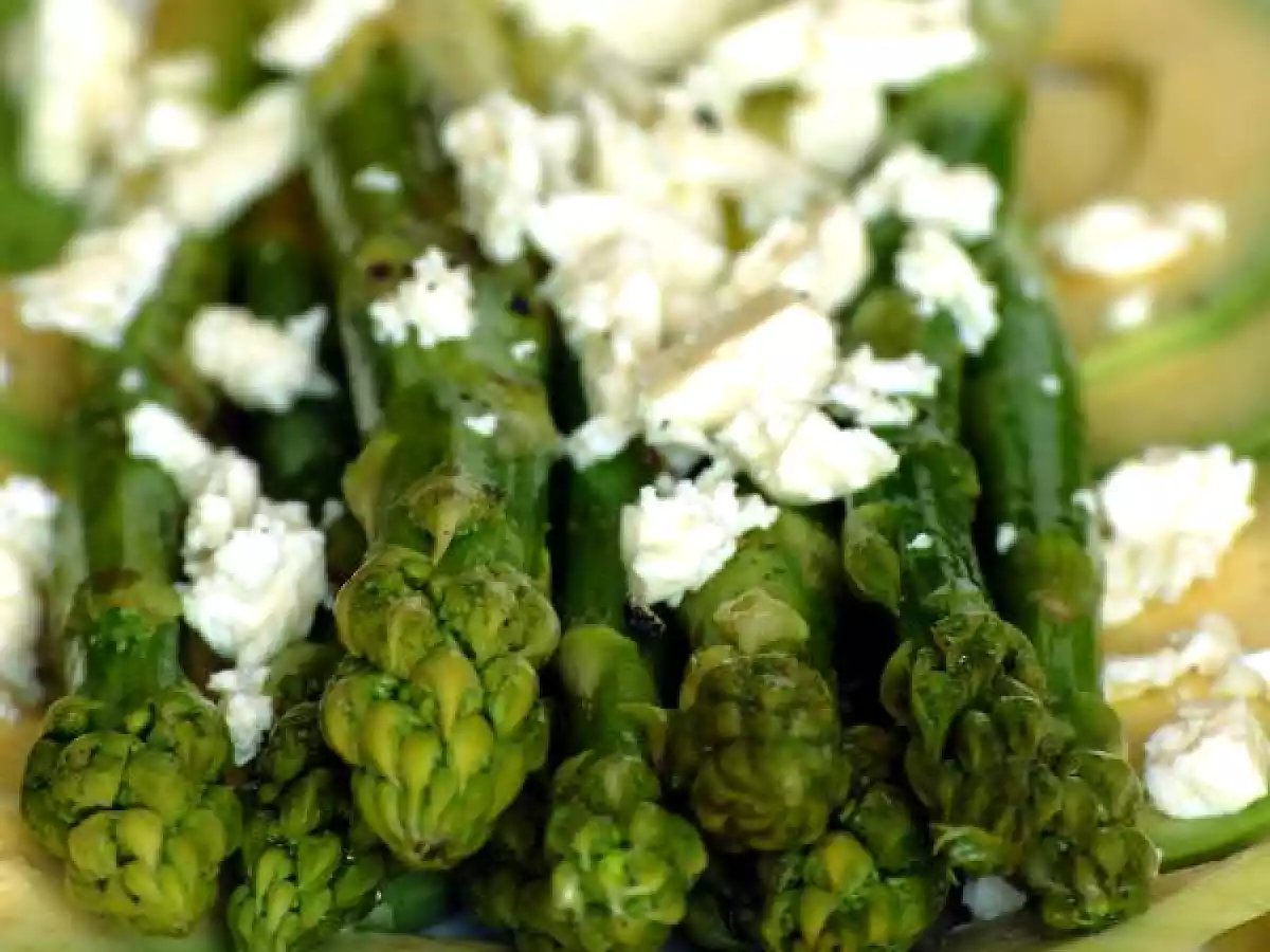 - Feta zerbröckeln Sie darüber nach, um die restliche Marinade über den Spargel, Paprika leicht verteilen und servieren mit Ciabatta.