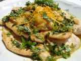 - Kartoffel schälen und in kleine Würfel schneiden. In reichlich Sonnenblumenöl knusprig braten und auf Küchenpapier abtropfen lassen.