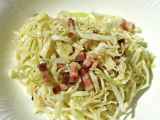 - Spitzkohl- und Zwiebelstreifen unter gelegentlichem Rühren langsam leicht hellbraun anbraten. Mit Limettensalz und Curry abschmecken.