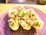 - Das so entstandene Dressing mit den Fleischstreifen, Tomaten- und Schalottenwürfeln vermengen.