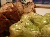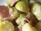 - Rosenkohl waschen und halbieren. In kochendem Salzwasser halb gar kochen und aus dem Wasser heben.