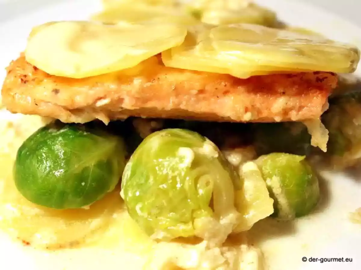 Norwegischer lachs mit kartoffeln und rosenkohl