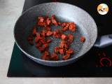 Sie können Ihre Chorizo-Pasta mit Chorizo-Streifen und Petersilie dekorieren! Auf den Tisch !