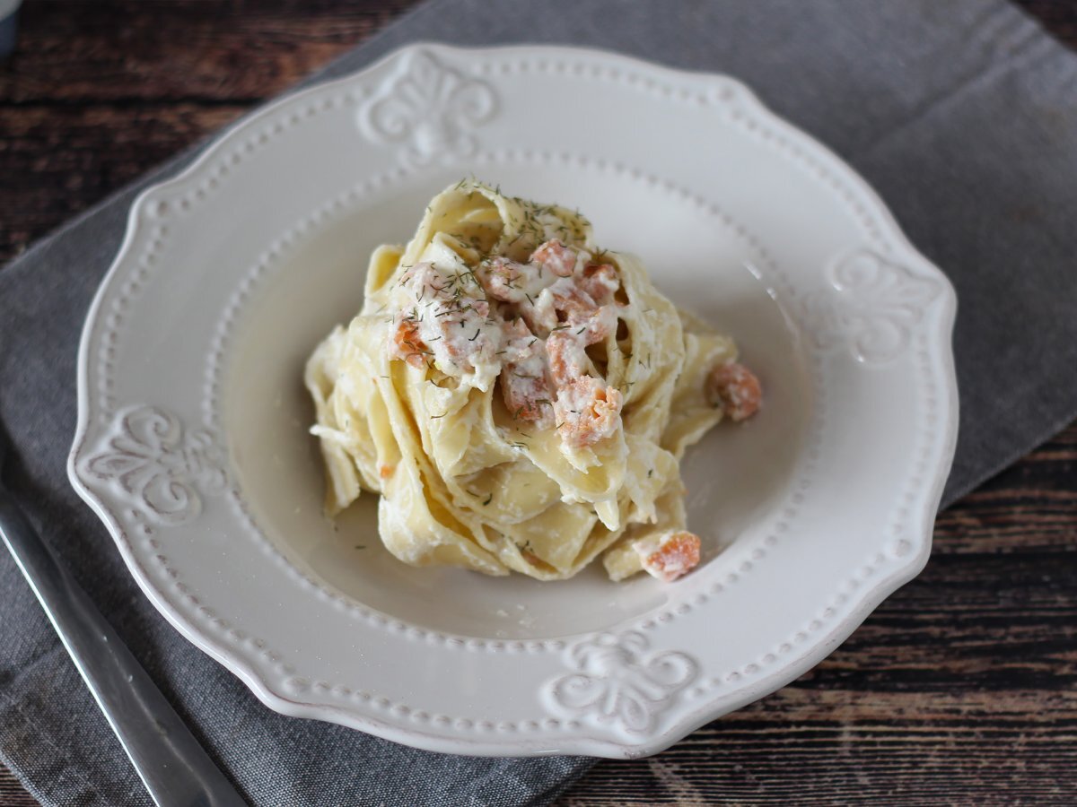 - Servieren und mit ein wenig Dill bestreuen. Die Pasta mit Lachs und Ricotta-Käse ist fertig!