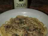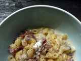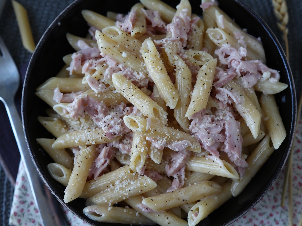 Die Nudeln mit Sahne und Schinken sind fertig!