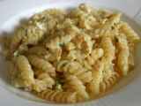 Wie bereitet man Nudeln mit gefrorenen Meeresfrüchten in weißer Soße zu?