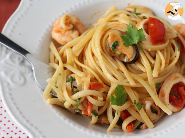Nudeln mit tiefgefrorenen meeresfrüchten, der schmackhafte und sehr schnelle erste gang