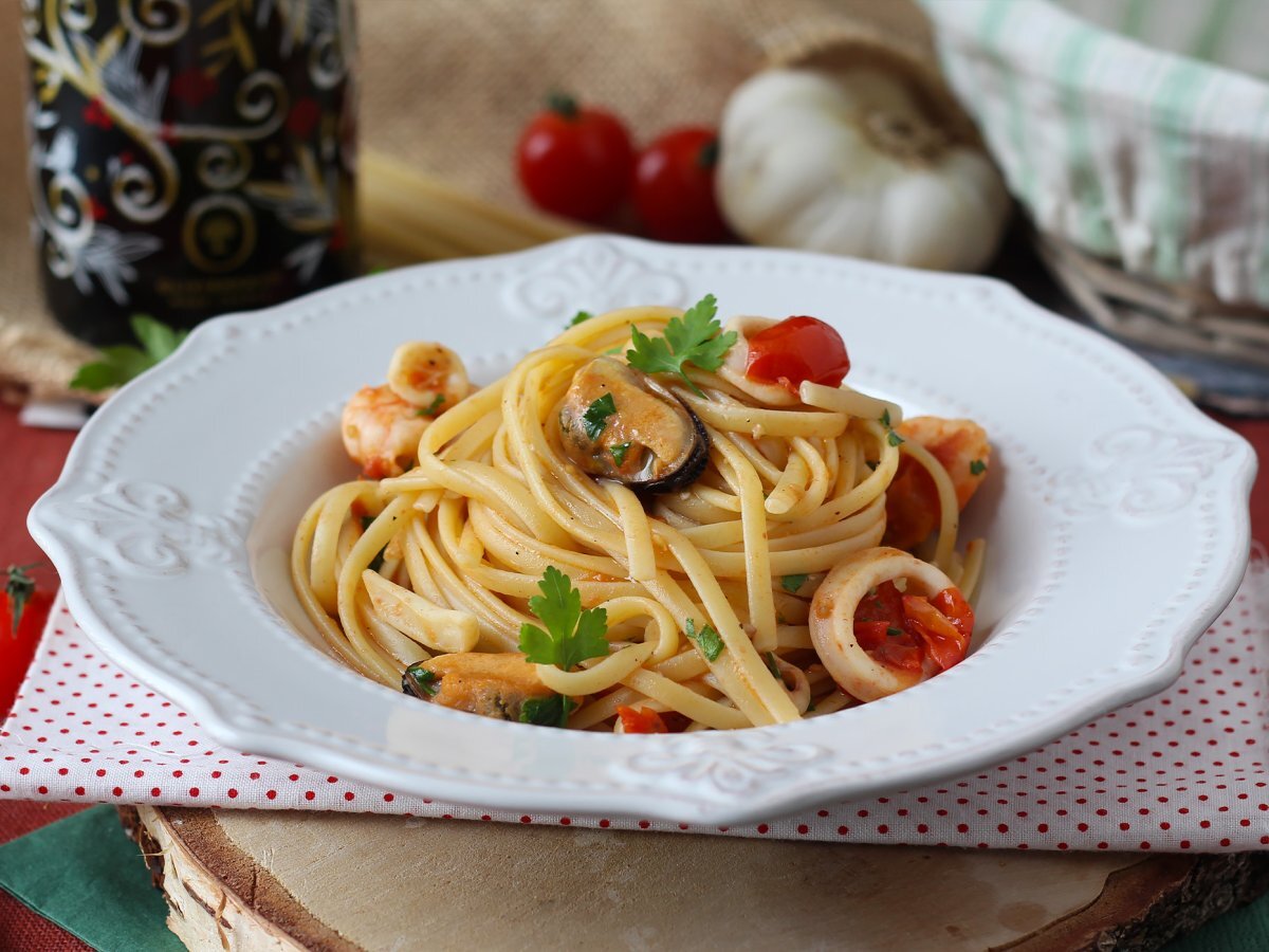 Wir erklären , wie man Nudeln mit tiefgefrorenen Meeresfrüchten zubereitet, das ideale Rezept, wenn man wenig Zeit zum Kochen hat. Es gibt mehrere Varianten dieses großen Klassikers der italienischen Küche, und hier schlagen wir unseren Favoriten vor: Linguine mit Meeresfrüchten und Kirschtomaten. In 15 Minuten bringen Sie ein schmackhaftes Gericht auf den Tisch, das Sie auch dann servieren können, wenn Sie in letzter Minute Gäste zum Abendessen haben (tiefgekühlter Fischmix fehlt nie in unserer Tiefkühltruhe). Folgen Sie der Schritt-für-Schritt-Anleitung, um einen perfekten ersten Gang mit der cremigen Fischsauce zu erhalten.