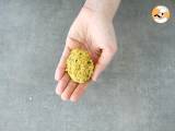 Den Rest der Haferflocken dazugeben und vermischen. Kleine Pastetchen (wie Nuggets) formen. Semmelbrösel einrollen.