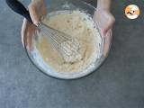 Mehl und Backpulver mischen, dann die Brühe dazugeben und gut verrühren. Etwa 30 Minuten kühl stellen (bis die anderen Zutaten zubereitet sind).