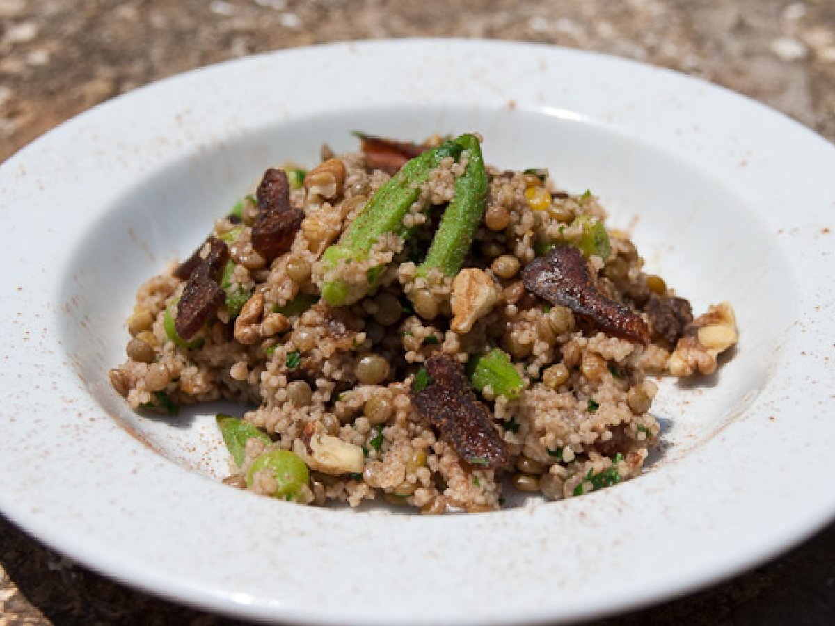- Wasser für Linsen, Okra und Bulgur-Put-Option. Alle kochen, bis getan.
