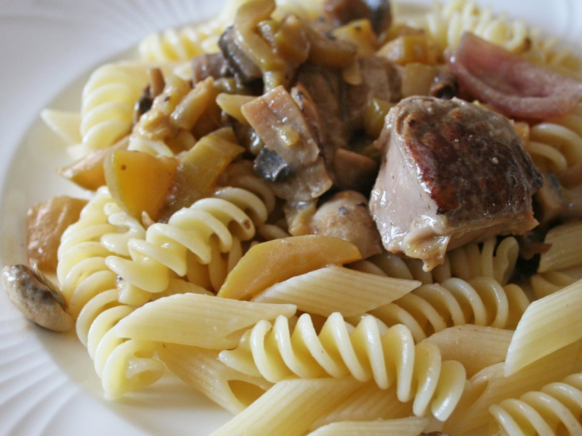 - In einer großen Pfanne das Olivenöl erhitzen, Kalbfleisch.