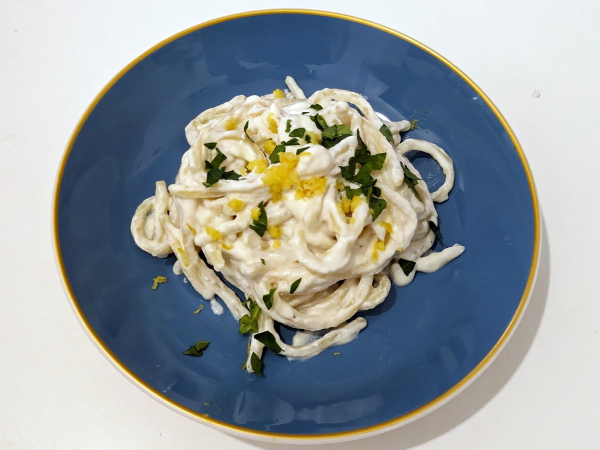 - Servieren und mit etwas geriebener Zitronenschale und gehackter Petersilie bestreuen. Die Nudeln mit Ricotta und Zitrone sind fertig!