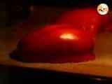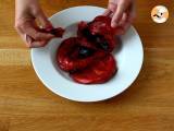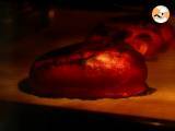 Die gekochte Paprika in einen Gefrierbeutel geben, den Beutel verschließen und 10 Minuten ruhen lassen. Beutel öffnen und Paprika häuten.