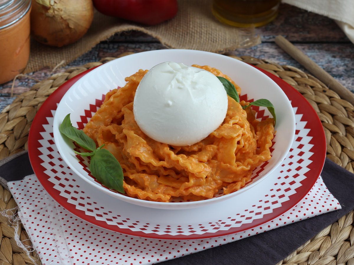 Sie kennen das klassische Pesto mit Basilikum, lassen Sie sich vom Pesto nach kalabresischer Art verführen! Ein Wunder, das aus Paprika und Ricotta hergestellt wird, ohne dabei viel Liebe und italienische Sonne zu vergessen. Kurz gesagt, eine köstliche Beilage zu Ihrer Pasta, ohne dabei den extra cremigen Mozzarella Burrata zu vergessen. Spielen Sie selbst mit unserer Anleitung unten ↓.