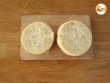 Bereiten Sie die Burgerbrötchen vor (oder verwenden Sie fertige Brötchen). Schneiden Sie einen Laib in zwei Hälften und bräunen Sie die Innenseiten in der Pfanne an, wenn Sie möchten.