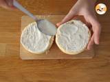 Bereiten Sie die Soße zu: Mischen Sie die frische Sahne mit Pfeffer und Salz. Die Soße auf die beiden Innenseiten des Brotes streichen.