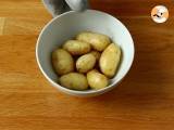 Die Grenaille-Kartoffeln in eine Schüssel geben. Salz, Pfeffer und einen Schuss Olivenöl hinzufügen. Zugedeckt bei maximaler Leistung 8 Minuten in der Mikrowelle garen.