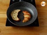 Schneiden Sie die Croissants in zwei Hälften und legen Sie sie dann in eine heiße Pfanne, um die Innenseite der Oberseite und unter der Unterseite zu rösten.