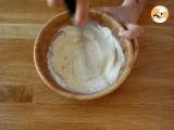 Das Kartoffelpüree zum Teig geben und vermischen. Zum Schluss die geschmolzene Butter hinzufügen und gut vermischen.