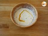 Sahne, Ei, Salz, Pfeffer und den gehackten Schnittlauch verrühren. Mehl hinzufügen und gut vermischen.