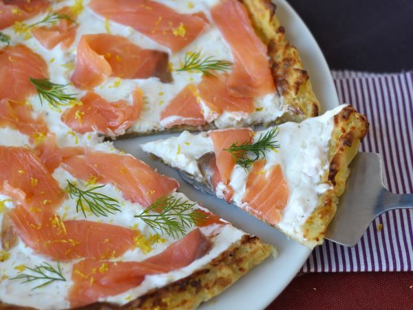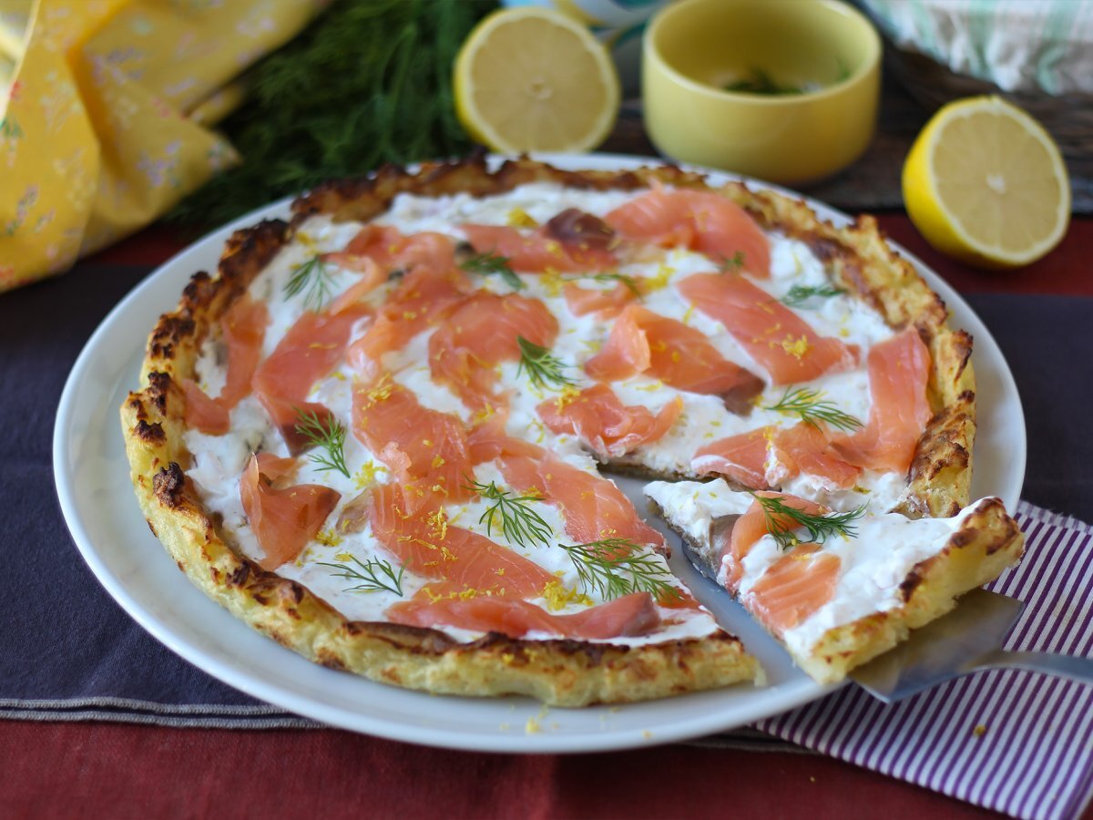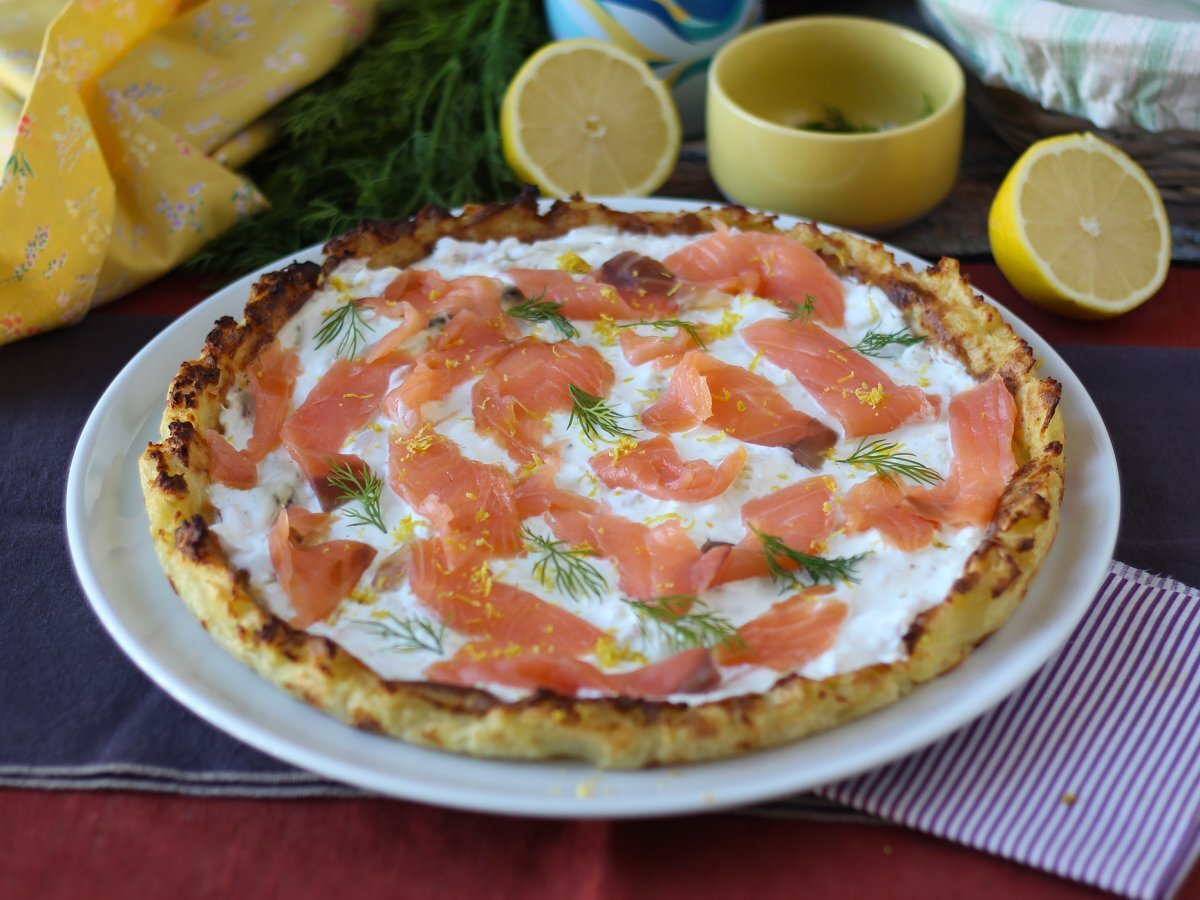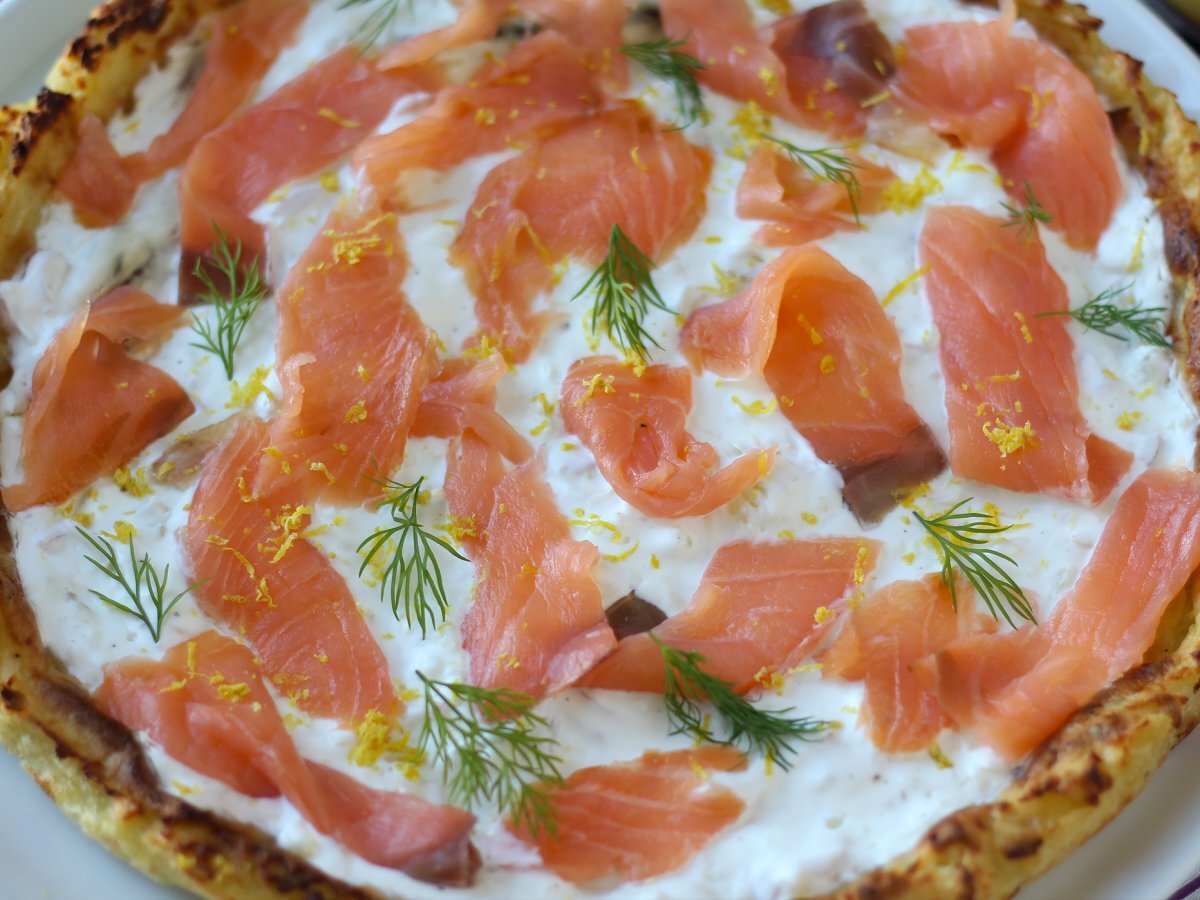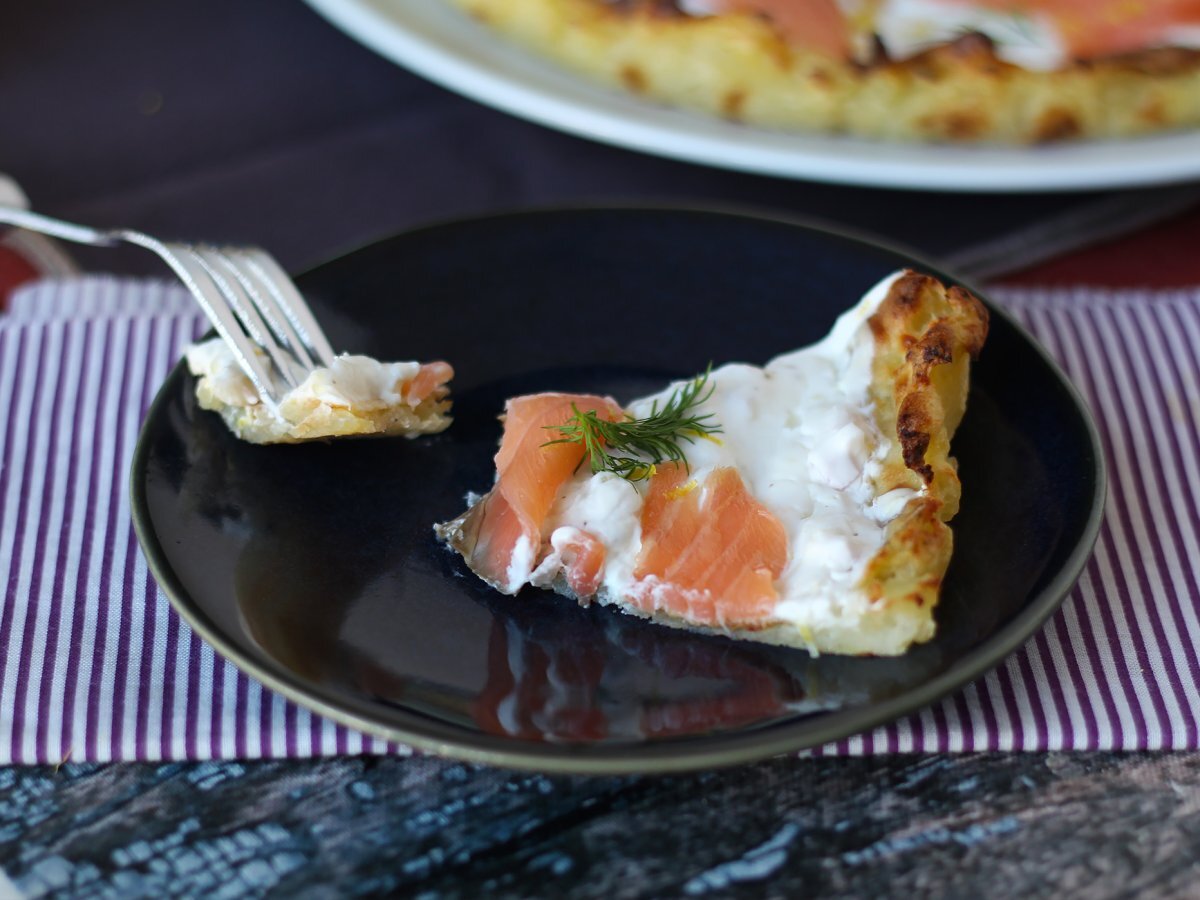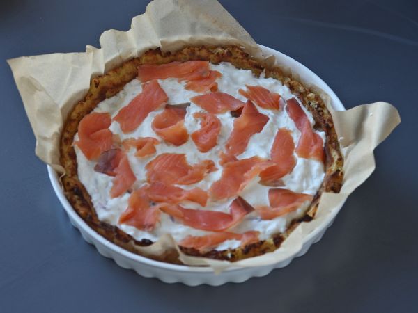 Kein Mürbe- oder Blätterteig mehr im Kühlschrank für Ihre Torte? Keine Panik! Probieren Sie diese originelle Version mit Kartoffeln und Räucherlachs! Statt des klassischen Teigs bilden die Kartoffeln hier eine knusprige, zart schmelzende Basis. Dieses Rezept eignet sich perfekt für ein leichtes Abendessen oder einen leckeren Brunch (in kleine Stücke geschnitten) und wird Ihre Gäste garantiert begeistern ;)