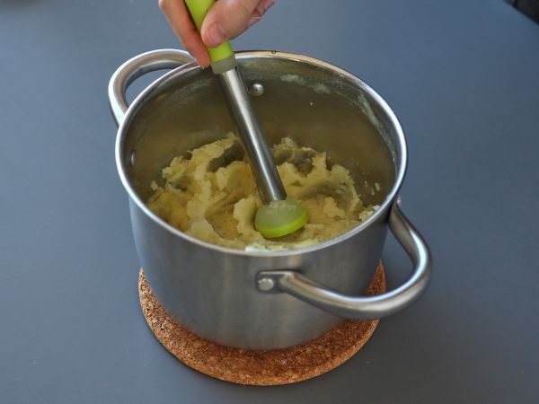 Die Kartoffeln abtropfen lassen, dann zerdrücken und mit Olivenöl, Salz und Pfeffer abschmecken.