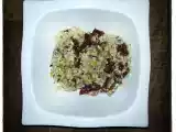 Anbraten, die Schalotten und Sellerie in einer großen Pfanne mit etwas Olivenöl bei schwacher Hitze. - Stir in Reis. Wenn es schön mit Fett und glasierten bedeckt, ablöschen mit dem Weißwein und kochen bei schwacher Hitze. Sobald die Flüssigkeit absorbiert wird, ein wenig Brühe, so daß der Reis mit Flüssigkeit bedeckt.