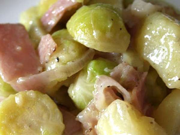 - Rosenkohl putzen und in Viertel schneiden in Salzwasser kochen fast.
