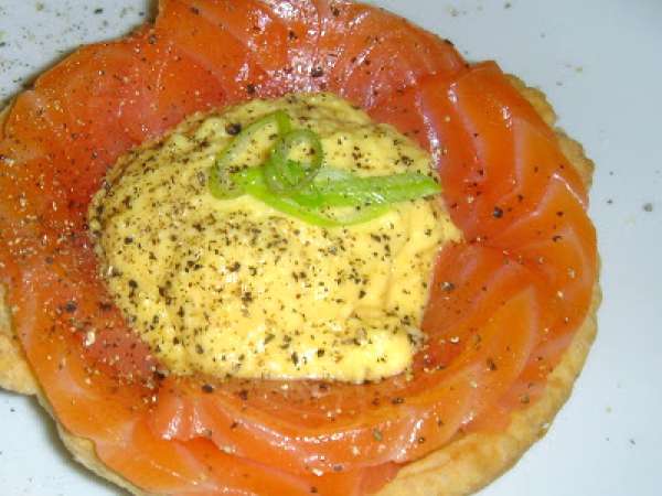 Saublingsfilet 200 g ohne Haut, in Würfel schneiden, starke cool, und Verlage mit 200 ml Sahne und 1/2 Protein durch homogene Masse erzeugt wird, durch ein Sieb streichen mit 1 Teelöffel Noilly Prat, Salz und weißer Pfeffer und einem Hauch von Koriander (zerdrückt) würzen. In der Spritzbeutel (Gefrierbeutel) komplett, cool. - Blätterteigtarte: