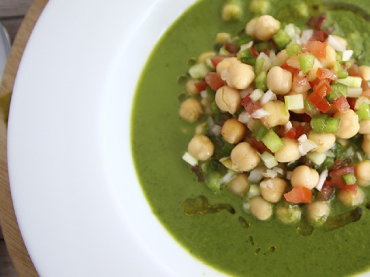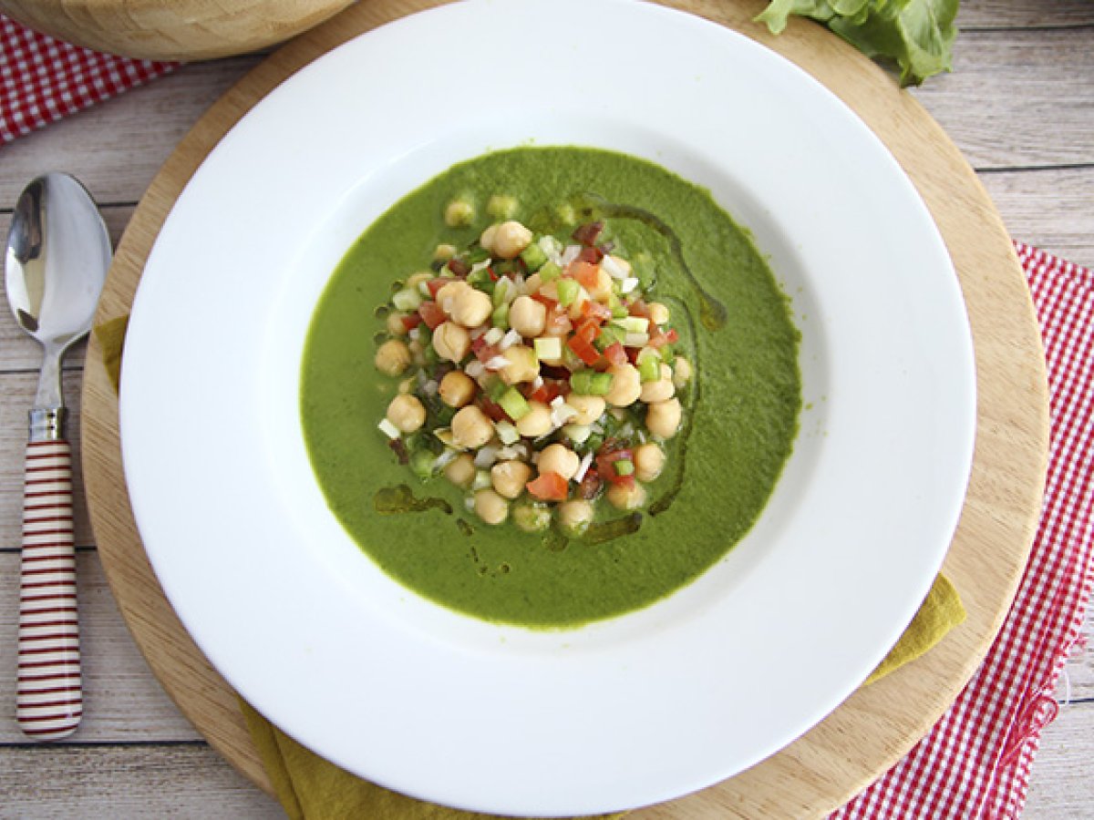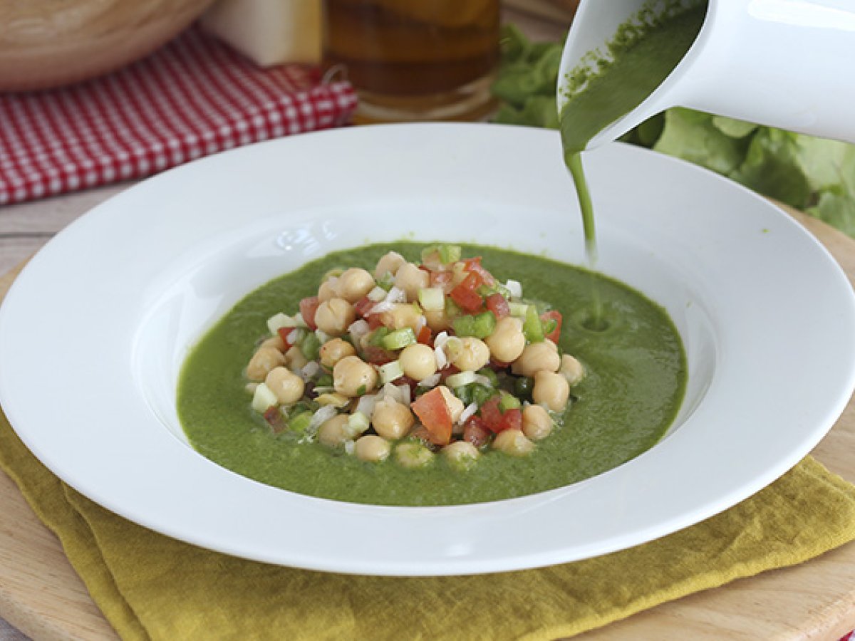 Wenn wir an Salat denken, kommt uns als erstes ein Salat in den Sinn, nicht wahr? Heute schlagen wir Ihnen eine originelle Verwendung für dieses Gemüse vor, das so reich an gesundheitsfördernden Nährstoffen ist: eine Suppe, begleitet von einem Kichererbsensalat für ein ausgewogenes Gericht! Auf den ersten Blick hört sich eine Salatsuppe vielleicht nicht sehr verlockend an, aber das Endergebnis ist eine überraschende Cremesuppe, die nicht nur schmackhaft ist, sondern auch das ganze Jahr über wunderbar funktioniert; sie kann sowohl warm als auch kalt gegessen werden! Wenn Sie dieses Gericht zu Hause nachkochen möchten, können Sie unser schriftliches und bebildertes Rezept Schritt für Schritt befolgen.