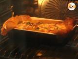 Mit frischem Basilikum bestreuen und im vorgeheizten Ofen bei 200°C 10 Minuten backen, dann den Ofen auf 180°C herunterschalten und weitere 20 Minuten backen.