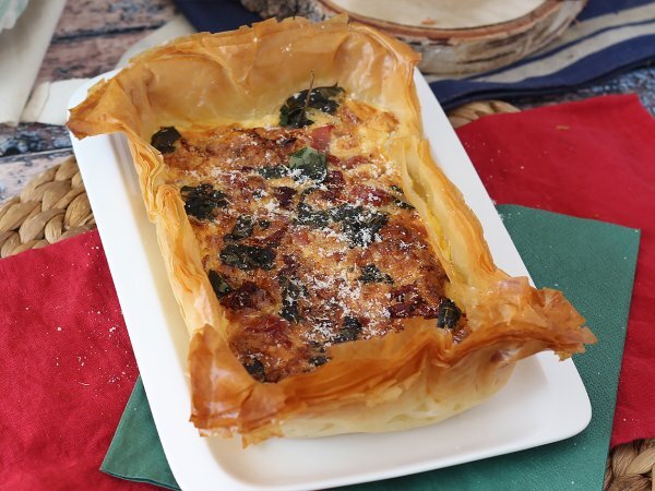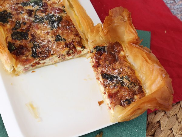 Wie bekommt man eine knusprige Torte? Indem man sie mit Filo-Blättern backt :-D Das Ergebnis ist garantiert knackig! Bei der Füllung haben Sie sich die italienischen Aromen ins Haus geholt, um ein unvergleichliches Ergebnis zu erzielen. Diese Torte wird der ganzen Familie schmecken! Folgen Sie unserer Anleitung unten Schritt für Schritt ↓ ↓.