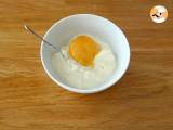 Sahne mit Eigelb, Salz und Pfeffer verrühren.