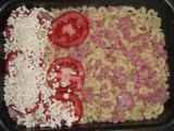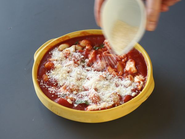 Vermischen Sie alles und bedecken Sie die Oberseite mit Parmesan.