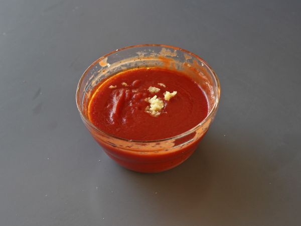 Die zerdrückte Knoblauchzehe (die hätten wir fast vergessen...) dazugeben und alles verrühren.