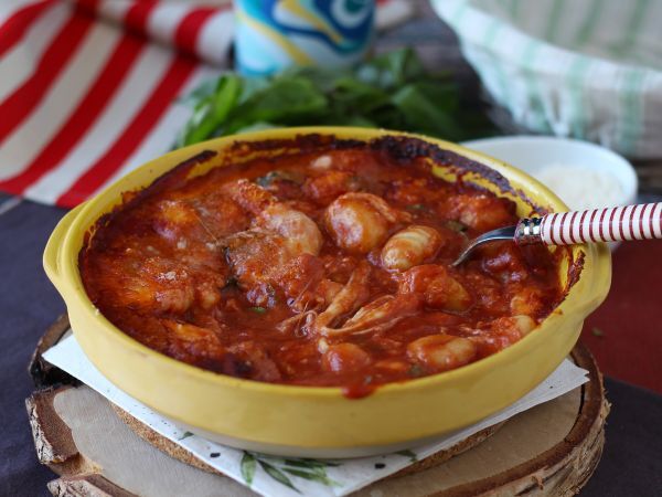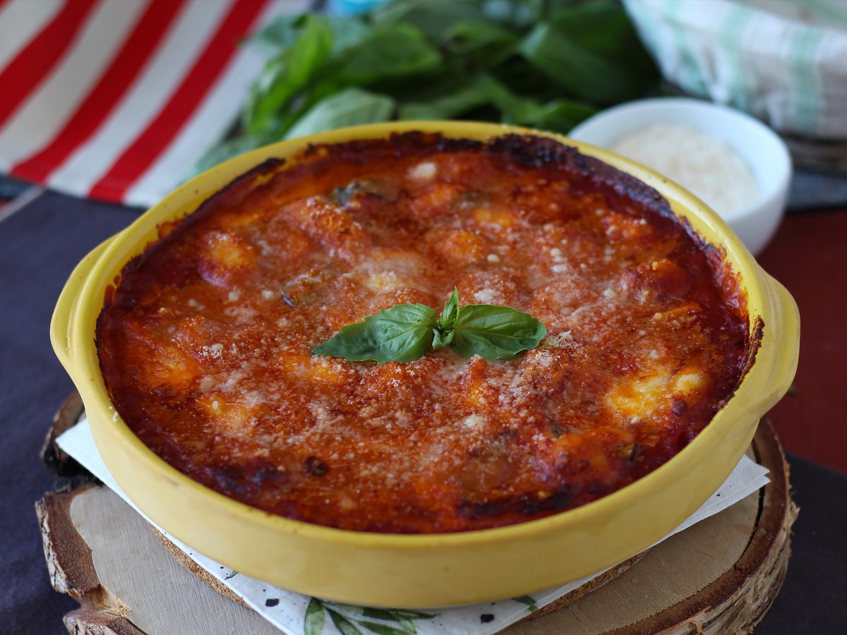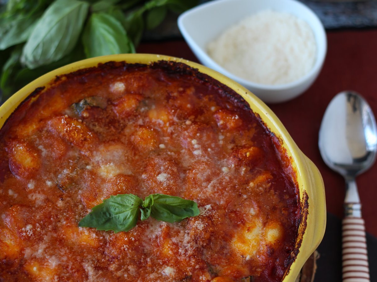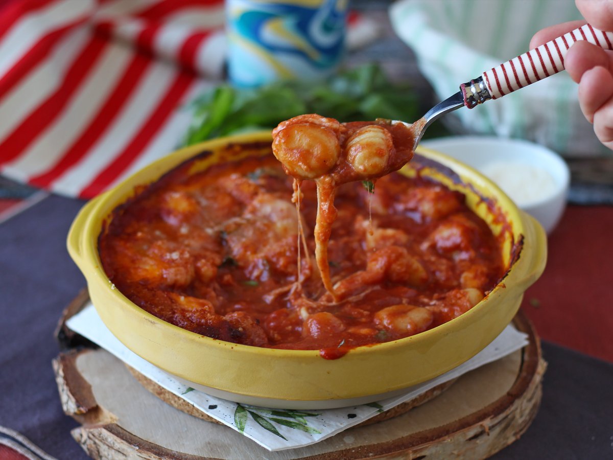Schneller und stärkender gnocchi-tomaten-mozzarella-gratin - gnocchi alla sorrentina aus dem ofen