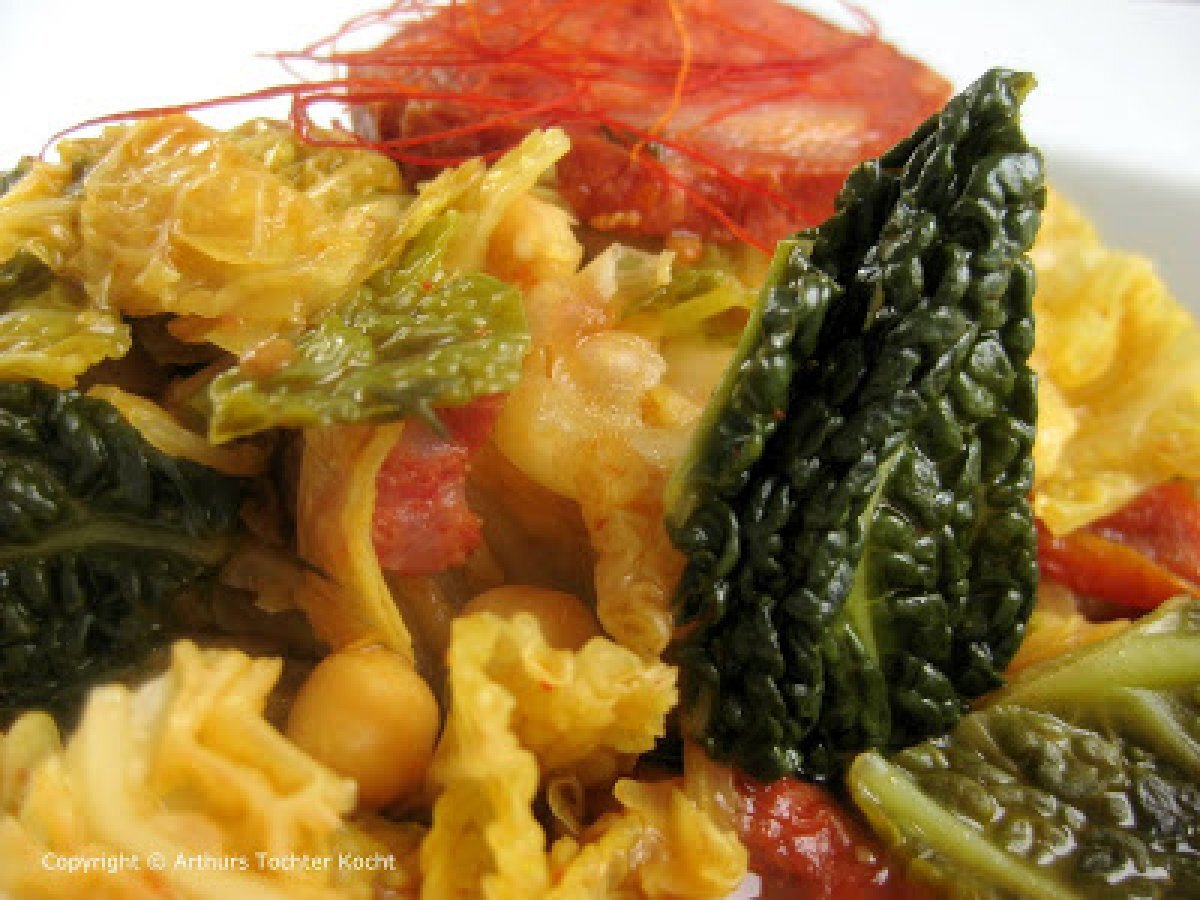 - Manchmal er in die Suppe und Kohl-Eintopf mit Kichererbsen und Chorizo kommt.