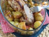 Eine Schüssel mit Brühe in den Boden des Backofens stellen und den Ofen auf 190 °C vorheizen. Das Gericht 45 Minuten lang backen.