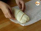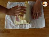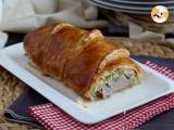Auf den Blätterteig legen, mit Salz und Pfeffer würzen und gut aufrollen.