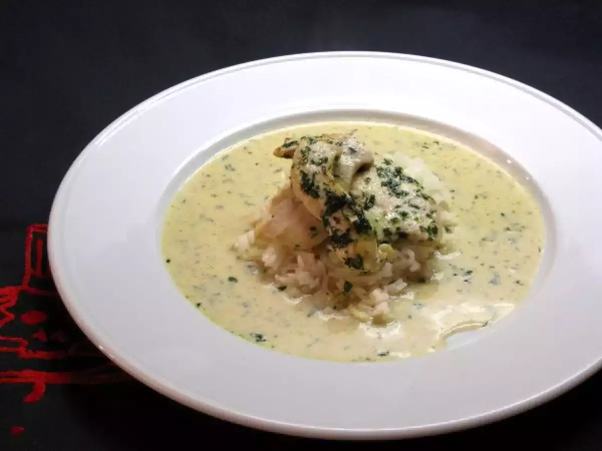 - In der Zwischenzeit kochen die Cremegrundlage und kurz umrühren Senf.