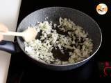 Schneiden Sie die Zwiebel und lassen es einige Minuten in einer Pfanne mit etwas Olivenöl köcheln.