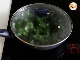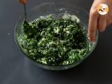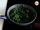 Salz, Pfeffer und Knoblauch in kleine Stücke schneiden. Mischen Sie alles und fügen Sie den Spinat hinzu. Bedecken Sie es anschliessend für 5 Minuten.