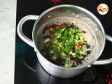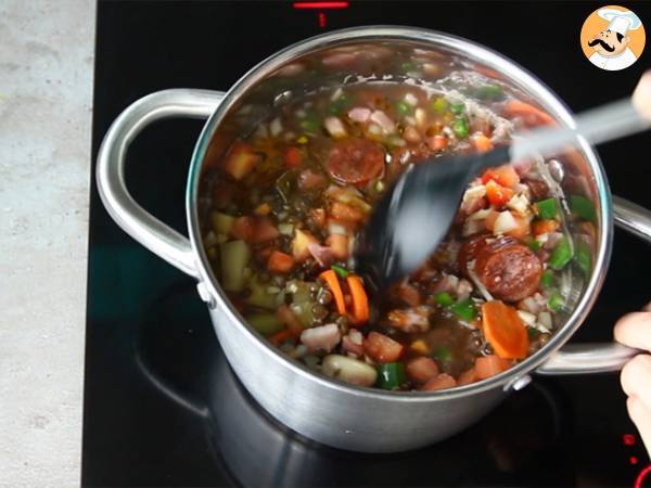 Fügen Sie es zusammen mit Salz, Paprika und Olivenöl zur Mischung hinzu. Gut vermischen, abdecken und 25 Minuten bei schwacher Hitze kochen (oder bis die Kartoffeln gar sind).