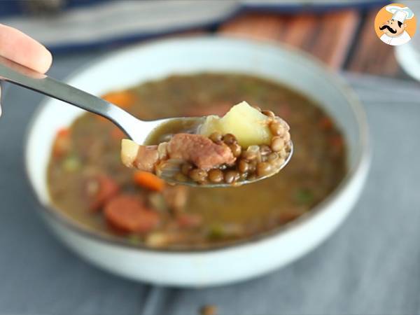 Suchen Sie nach einem einfachen und vollständigen Auflaufrezept? Entscheiden Sie sich für diese Linsen nach spanischer Art, die traditionell „Lentejas“ genannt werden. Eine Mahlzeit, deren Rezept von Generation zu Generation weitergegeben wird :-) So können Sie Ihre persönliche Note hinzufügen, die den Unterschied macht! Manche fügen gerne Hühnchen oder sogar Blutwurst hinzu, andere kombinieren Reis mit Linsen, es liegt an Ihnen! Zögern Sie nicht, uns Ihre Präferenzen in den Kommentaren mitzuteilen ;-)