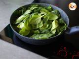 Den gewaschenen und abgetropften Spinat hinzufügen. Kommen Sie zurück.
