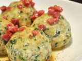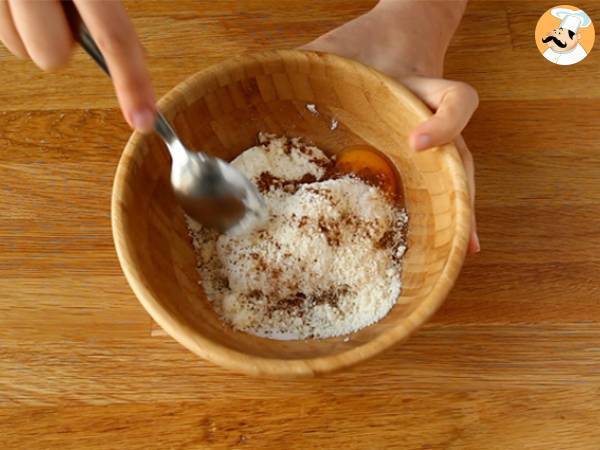 Spinat hacken und mit 60 g Parmesan, Salz, Pfeffer und 1 Ei vermischen.