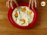 Geben Sie die Ricotta-Mischung darüber und graben Sie dann mit einem Esslöffel vier Löcher aus.