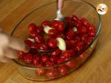 Die Knoblauchzehen schälen und entkeimen. Waschen Sie die Tomaten und geben Sie sie dann in eine Auflaufform.