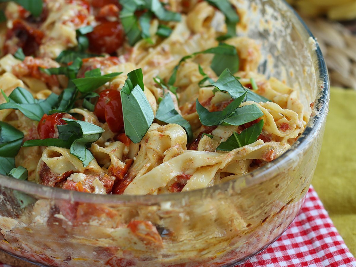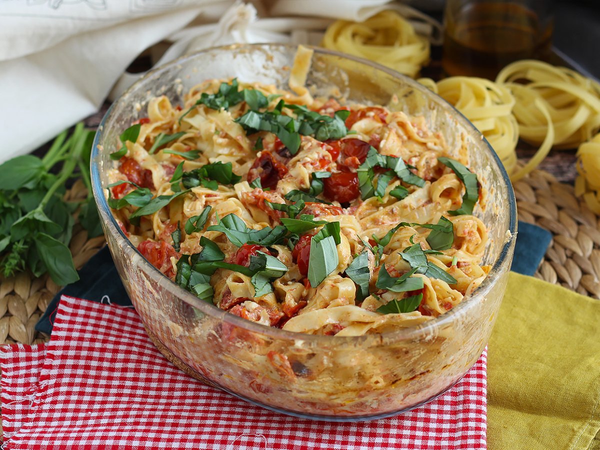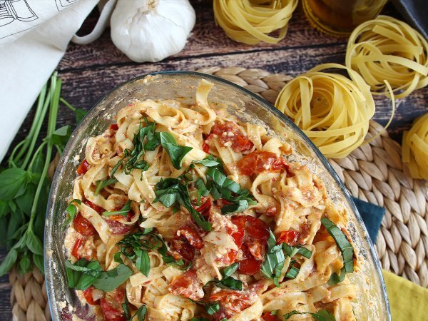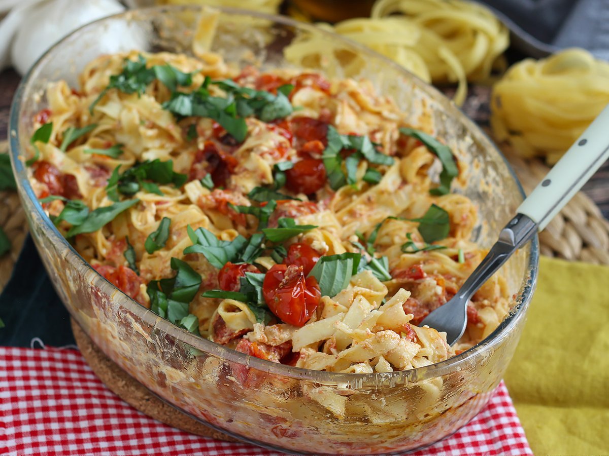 Tagliatelle-feta-kirschtomaten – gebackene feta-nudeln